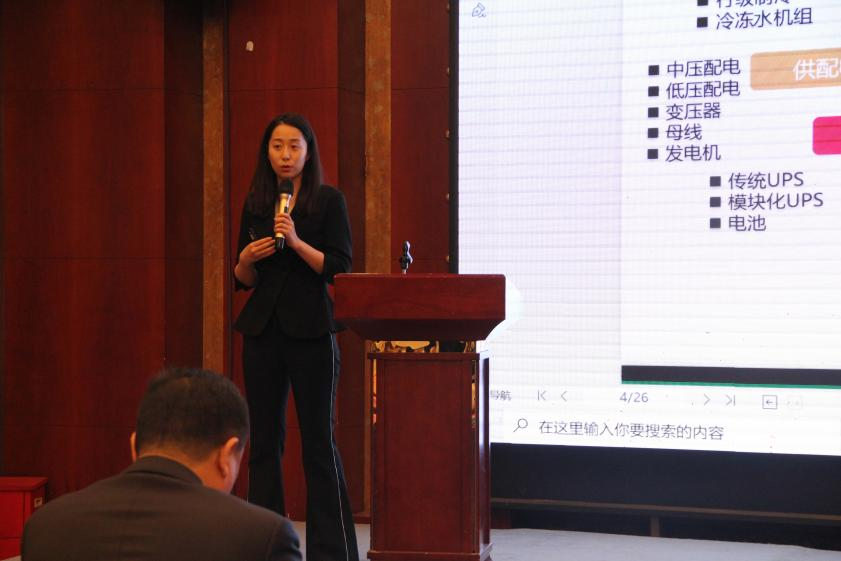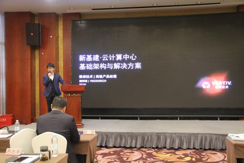 (維諦技術(shù)有限公司高級(jí)產(chǎn)品經(jīng)理樊韓瑞作題為《大道至簡(jiǎn)——PUE 新政下新基建云計(jì)算中心基礎(chǔ)架 構(gòu)與解決方案》演講)
